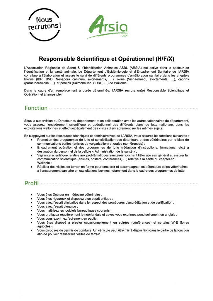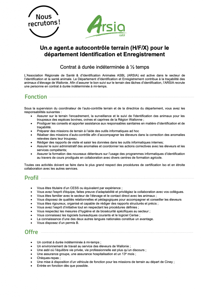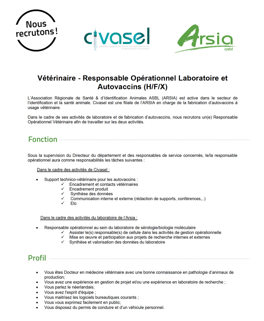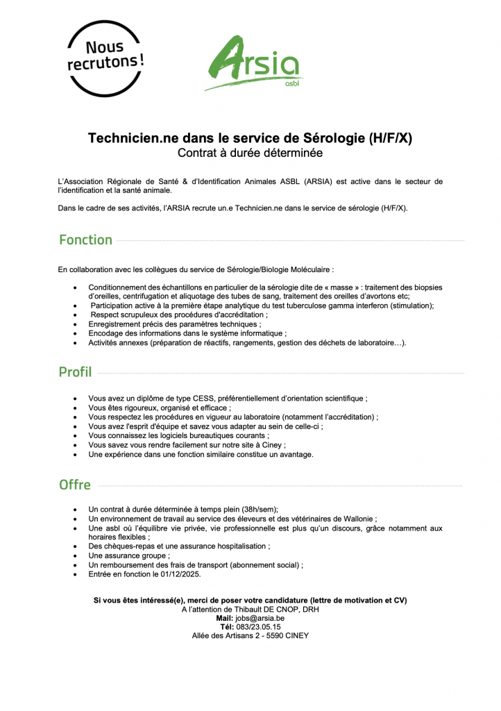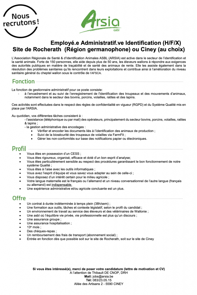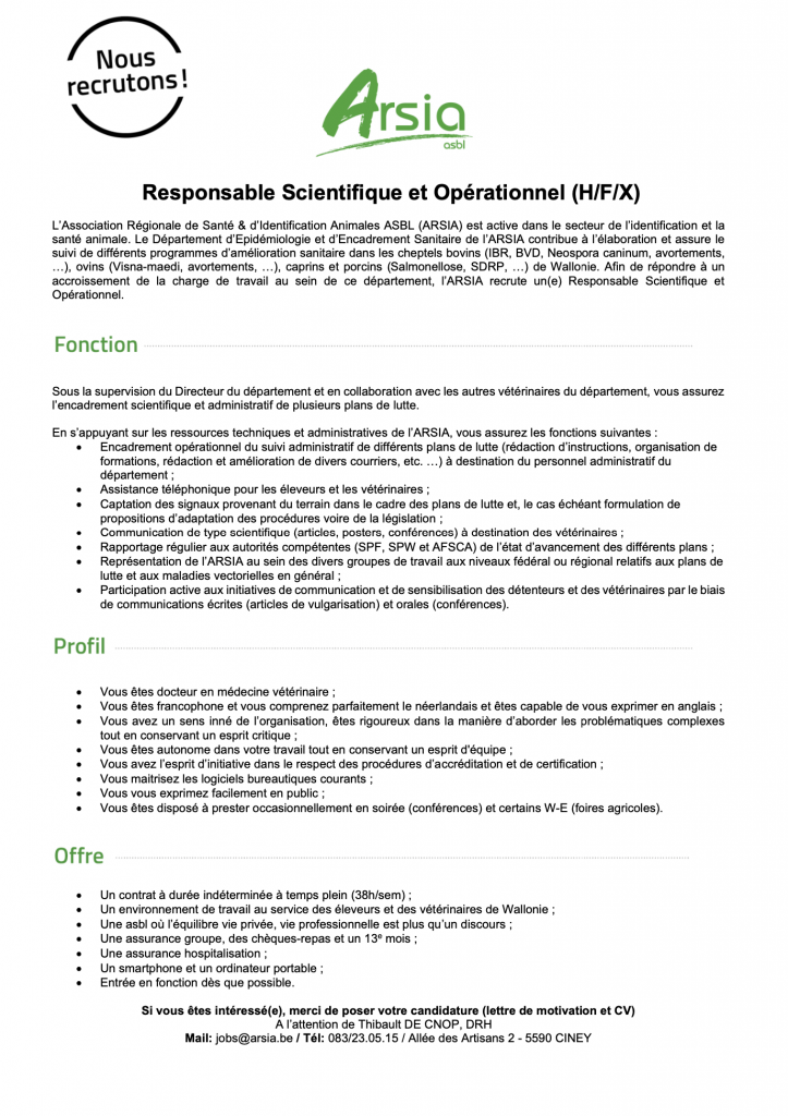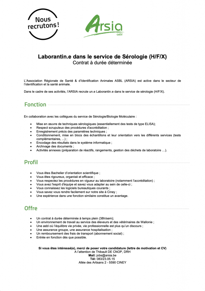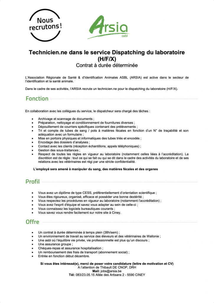 Pour postuler à nos offres, merci d'adresser vos candidatures à l'adresse jobs@arsia.be